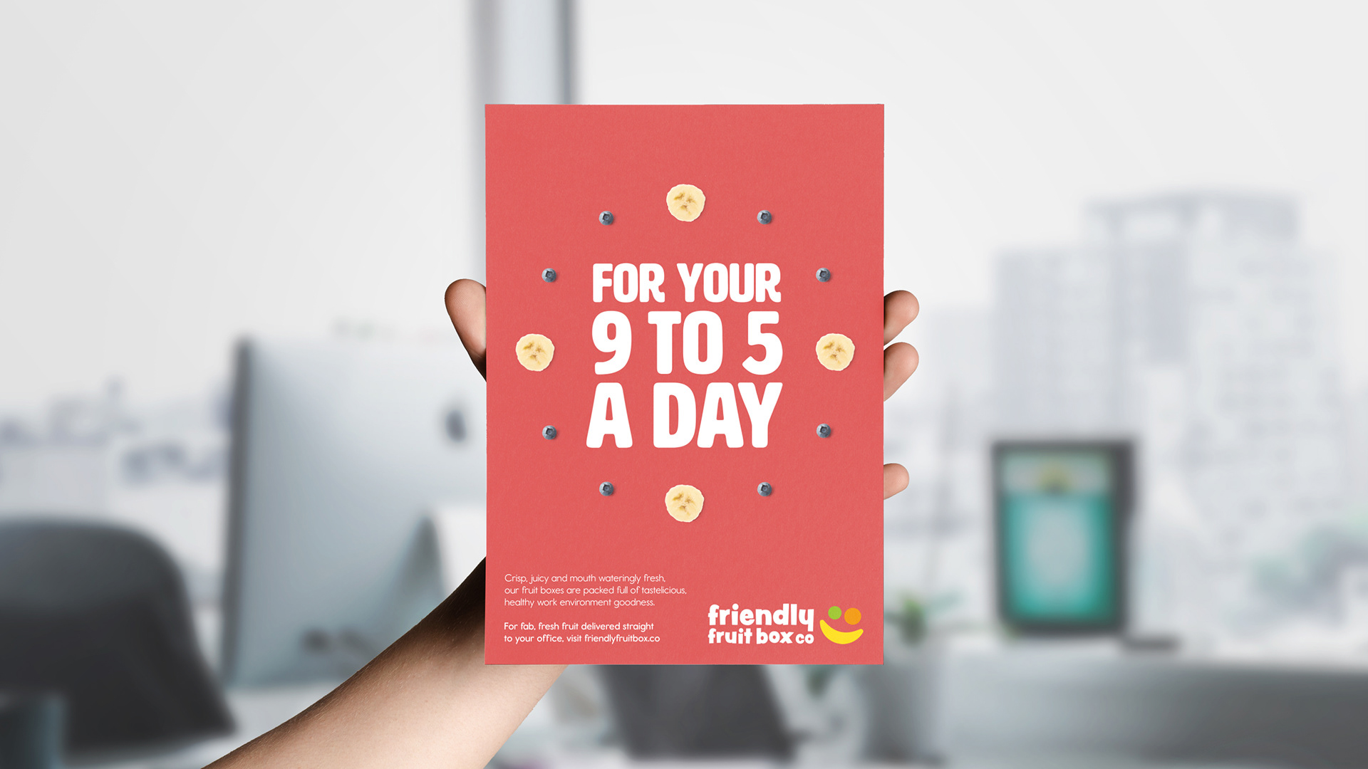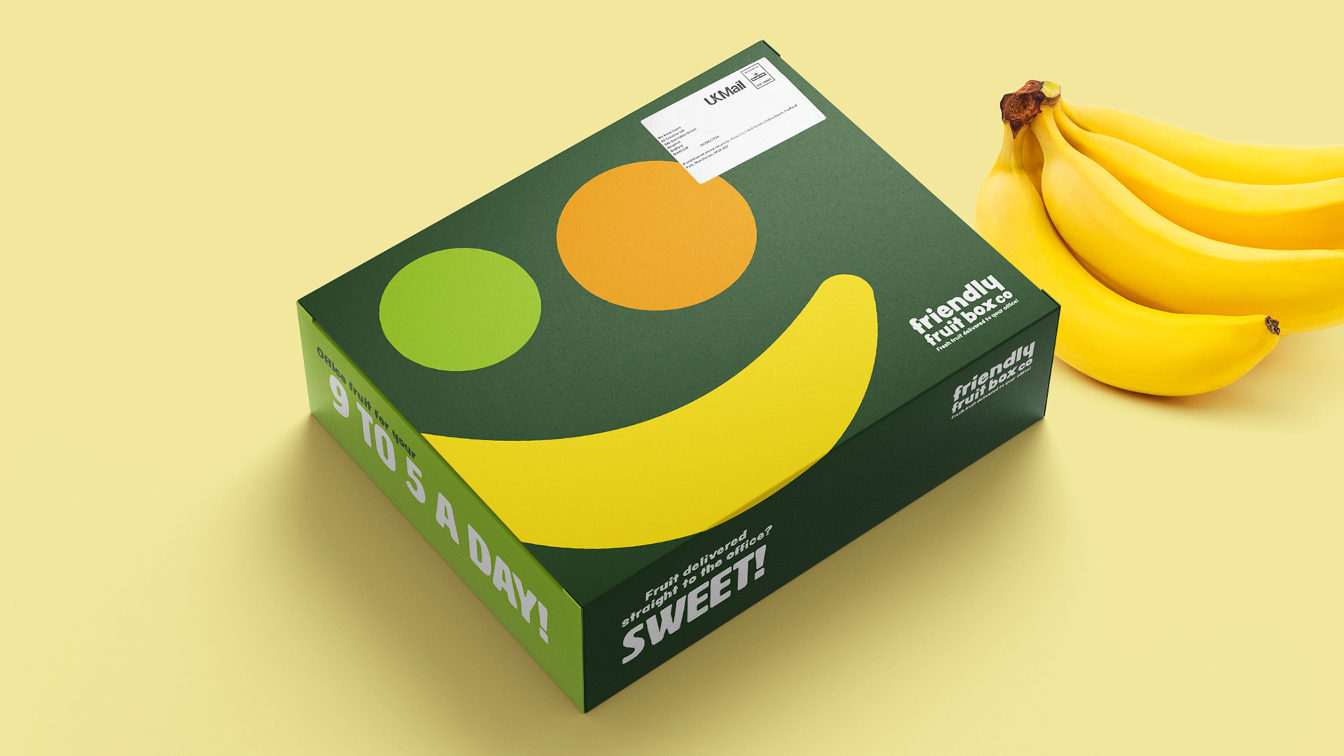 Friendly Fruit Box Co. is an office subscription service delivering fresh fruit on a regular basis. The key challenge was to make fruit feel playful and appealing, rather than routine or overtly “healthy.”