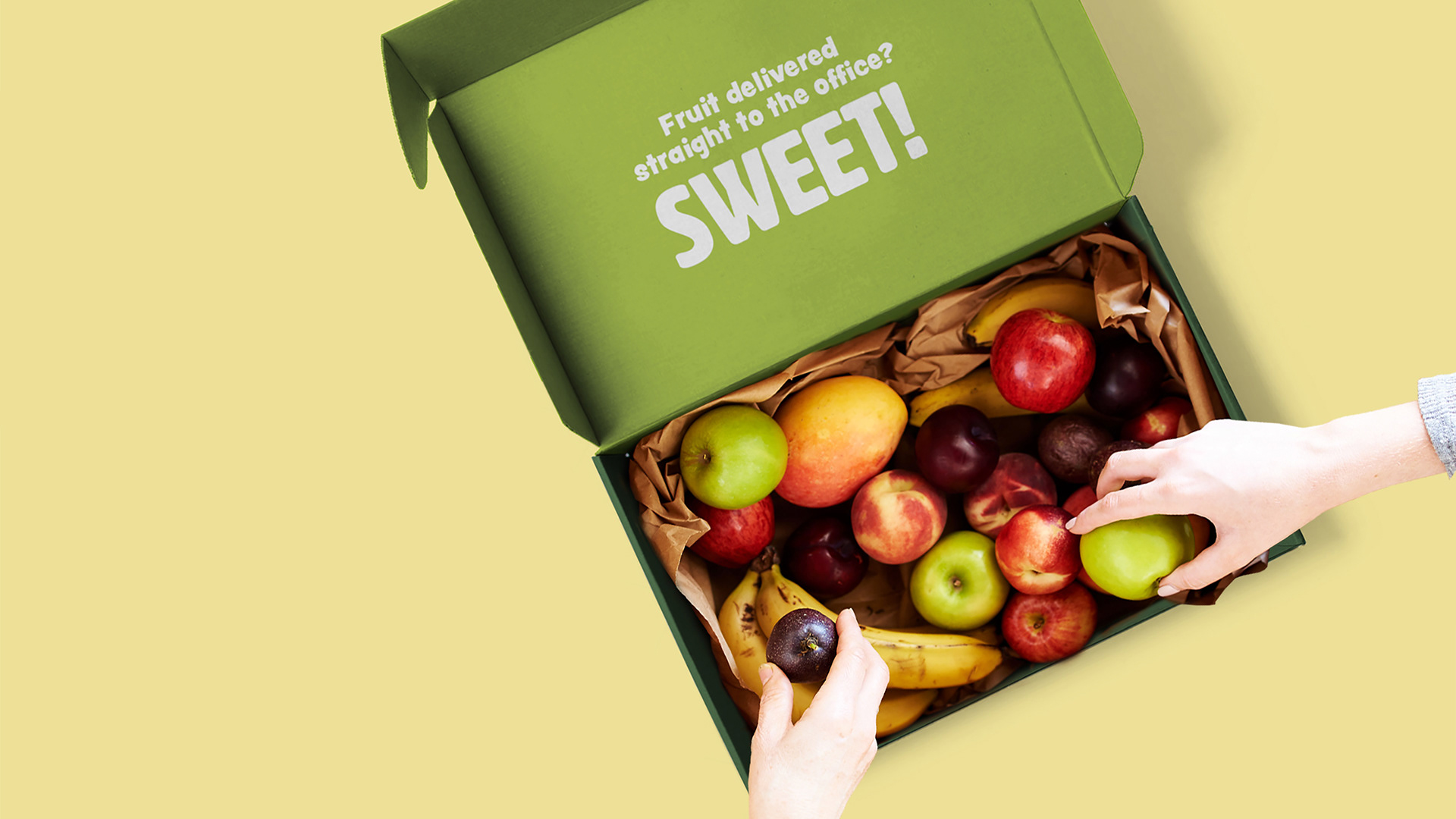 A fruit delivery brand that swaps worthy messaging for colour, character, and a big friendly smile.