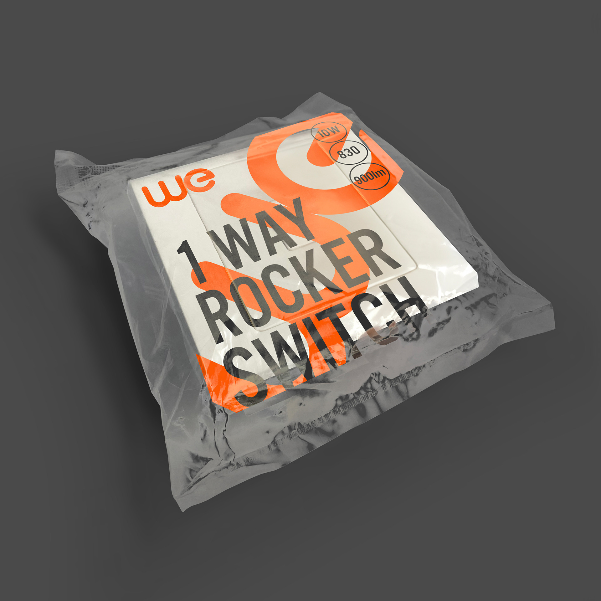The logo was developed from the WE initials, drawing inspiration from the universally recognised standby symbol to create a mark that feels instantly electrical. This became the foundation for a bold and functional brand system.
